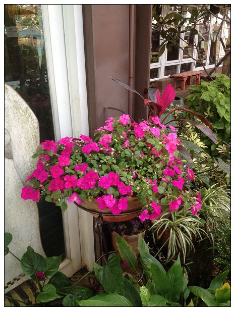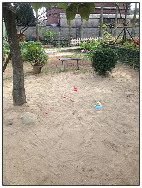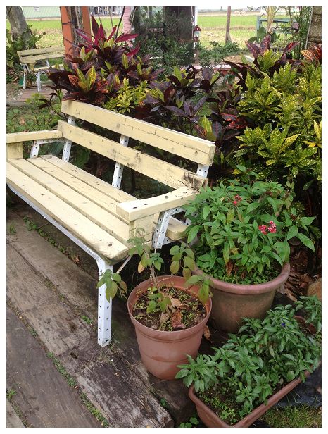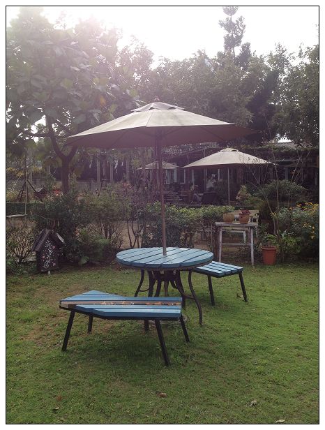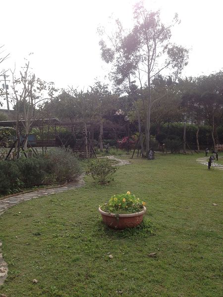 後院的小學生客桌椅,換上了五彩顏色,增添些許童趣。