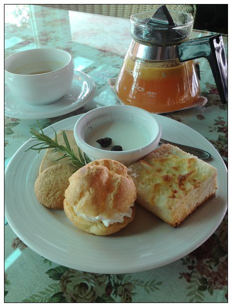 在我才將電腦搬出來準備開工,服務生引我進室內座位,雖然戶外位置有陽光,冷風不時吹過來,身體還是會颤抖;搬進室內就很舒服,可以安心做事、喝咖啡及享用甜點下午茶點心。