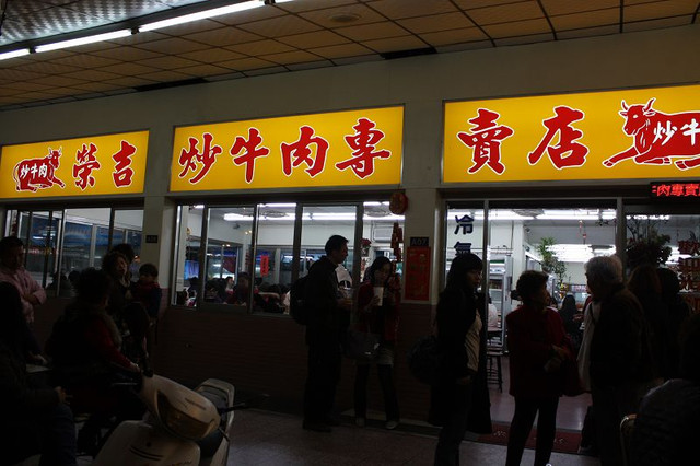 再次前來,小北夜市規模縮小好多,若不是還有幾家老店撐著,我想小北夜市這個招牌可能走入歷史了。緊鄰的東帝士百貨以夷為平地,那裡曾是我們考完試爸媽獎勵我們的場所。記得以前的光南唱片就在東帝士百貨內,每次去一定要買唱片和店員索取歌星的大張海報,然後再到小北夜市吃吃喝喝,才甘願回家。如今,小北夜市改名為小北商場,以前常光顧的店除了旗魚羹,另一家屹立不搖的就是榮吉炒牛肉。這兩家的招牌菜經常成了我們家的宵夜餐,一碗旗魚羹搭一盒芥藍炒牛肉,吃的飽飽才肯去睡覺。