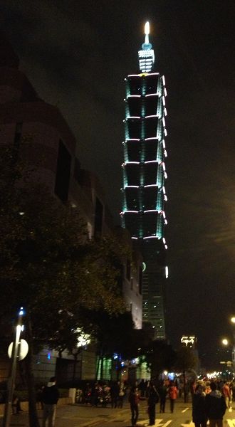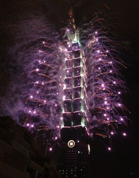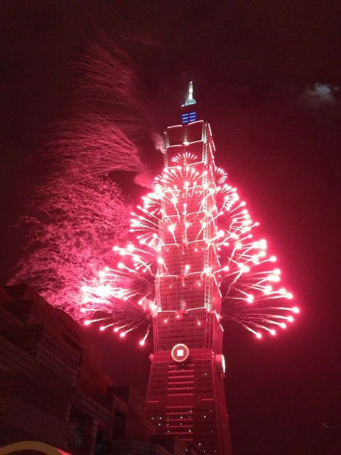 在信義路上觀賞台北101煙火,
